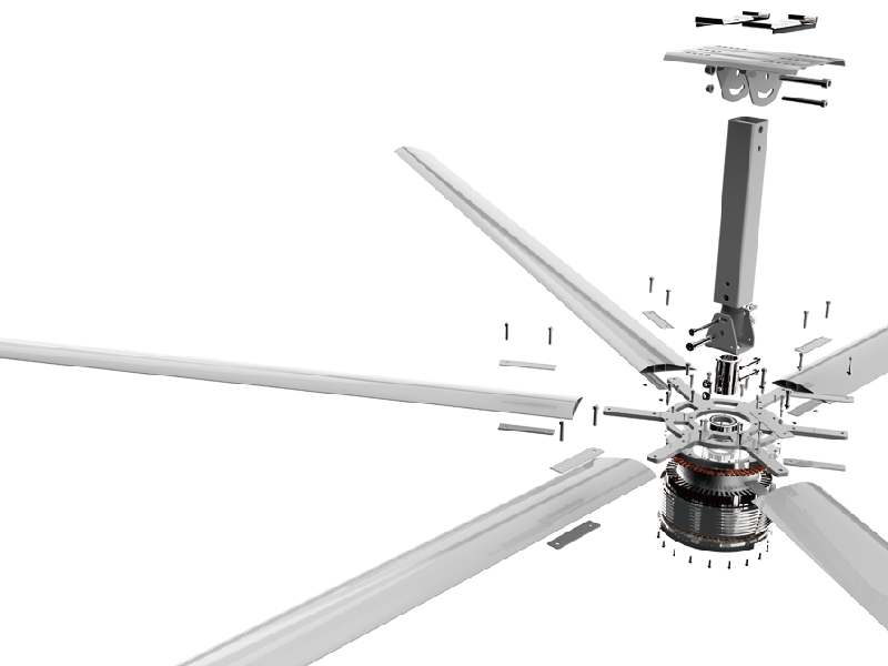 一種直徑可達(dá)7.3米的大型吊扇;應(yīng)用空氣動力學(xué)原理和先進(jìn)工 藝制造的超大型節(jié)能風(fēng)扇僅用1.5Kw的功率就可以驅(qū)動大量的空 氣,產(chǎn)生超大面積的自然微風(fēng)系統(tǒng),起到環(huán)境通風(fēng)和降溫的雙重功 能??胺Q高大空間通風(fēng)降溫的完美解決方案。